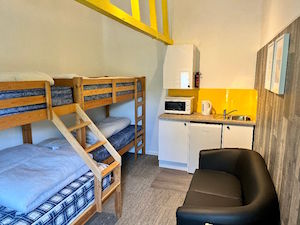 All Cabins have bunk beds, 1x double and single bed and 1x single bunk bed. Duvets and pillows are provided BUT no covers or bed linen. Your kitchenette includes a fridge, microwave, kettle, toaster, with crockery and cutlery for 5 persons. Outside there is a picnic bench for your own use. Toilet and washroom facilities are provided externally in an adjacent building. Cabin rooms are not interconnected to the The Lodge accommodation. See the Indoor Accommodation Plan view on the DOWNLOADS page.Important please note: Bedding is not provided, you will need to bring your own duvet covers, sheets and pillow cases or sleeping bags. Only 1 key is issued upon arrival.